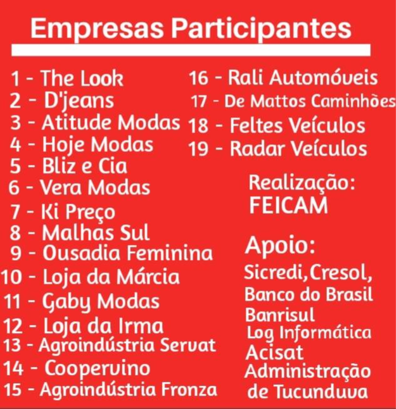 Resgatando os grandes eventos, Tucunduva realizará no sábado, dia 29 de Setembro de 2018, o 1º Feirão Queima de Estoque. O evento que irá reunir diversas empresas tucunduvenses dos segmentos de roupas, calçados, agroindústrias e veículos promete movimentar o comércio local. O 1° Feirão acontecerá no Complexo Esportivo de Tucunduva onde está localizado o Ginásio Municipal de Esportes João Puhl e o campo de futebol sete, das 09 até às 21 horas. Além das inúmeras empresas com ofertas e promoções diferenciadas, muitas serão as atrações: Brinquedos Infláveis, Praça de Alimentação, Wi-Fi Liberado e também o Balão Sicredi. As pessoas que comprarem acima de R$ 100,00 nos stands participantes, irão preencher uma cautela para concorrer a voos com o Balão Sicredi. É importante ressaltar, que por motivos de segurança, o voo é cativo, onde o Balão fica amarrado ao chão, subindo na vertical em torno de 20 metros, e somente serão realizadas em condições climáticas favoráveis. Também será disponibilizada erva mate e água quente para as pessoas que desejarem participar da mateada. Toda comunidade está convidada a participar e fazer do evento um grande sucesso, vai ser o Maior Barato Comprar. O 1° Feirão Queima de Estoque tem a realização da FEICAM, com o apoio da Administração Municipal de Tucunduva, Secretaria de Indústria e Comércio, Acisat, Log Informática, Sicredi, Cresol, Banco do Brasil e Banrisul.