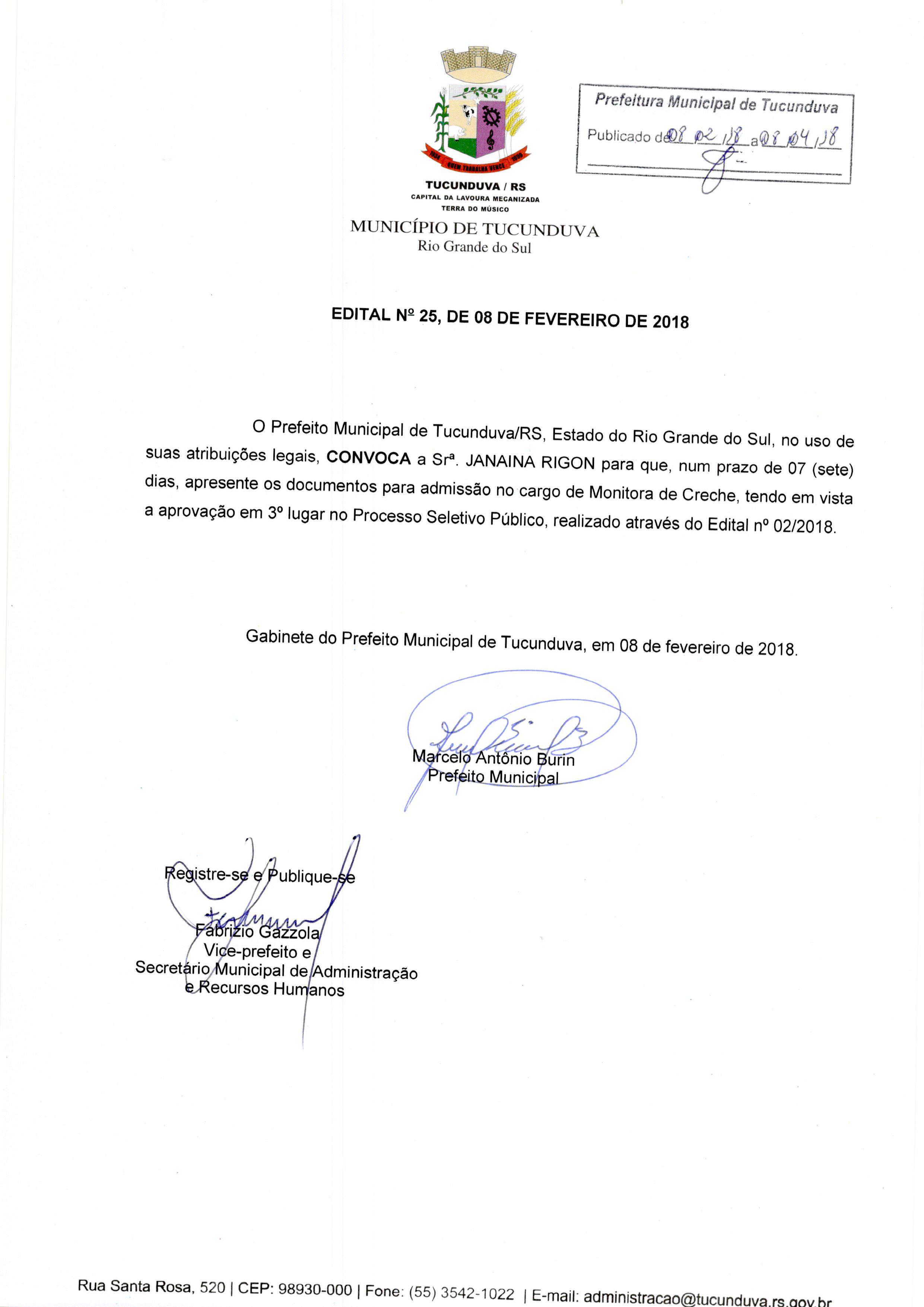 EDITAL Nº 25 DE 08 DE FEVEREIRO DE 2018.