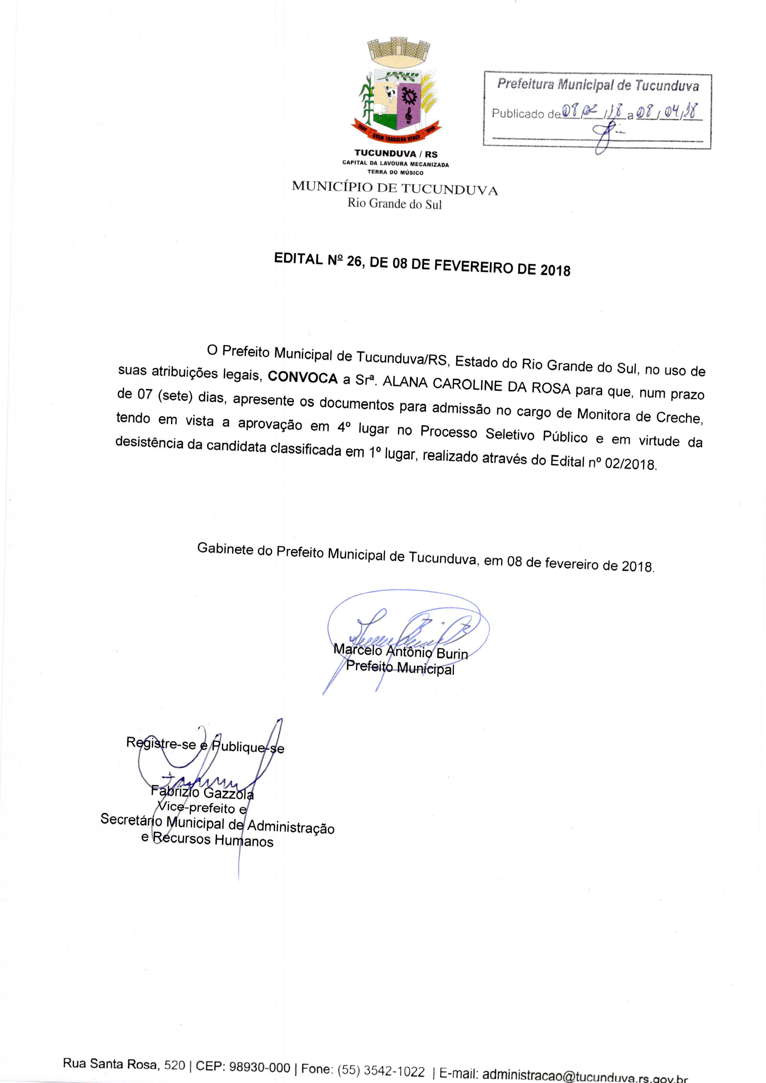EDITAL Nº 26 DE 08 DE FEVEREIRO DE 2018.