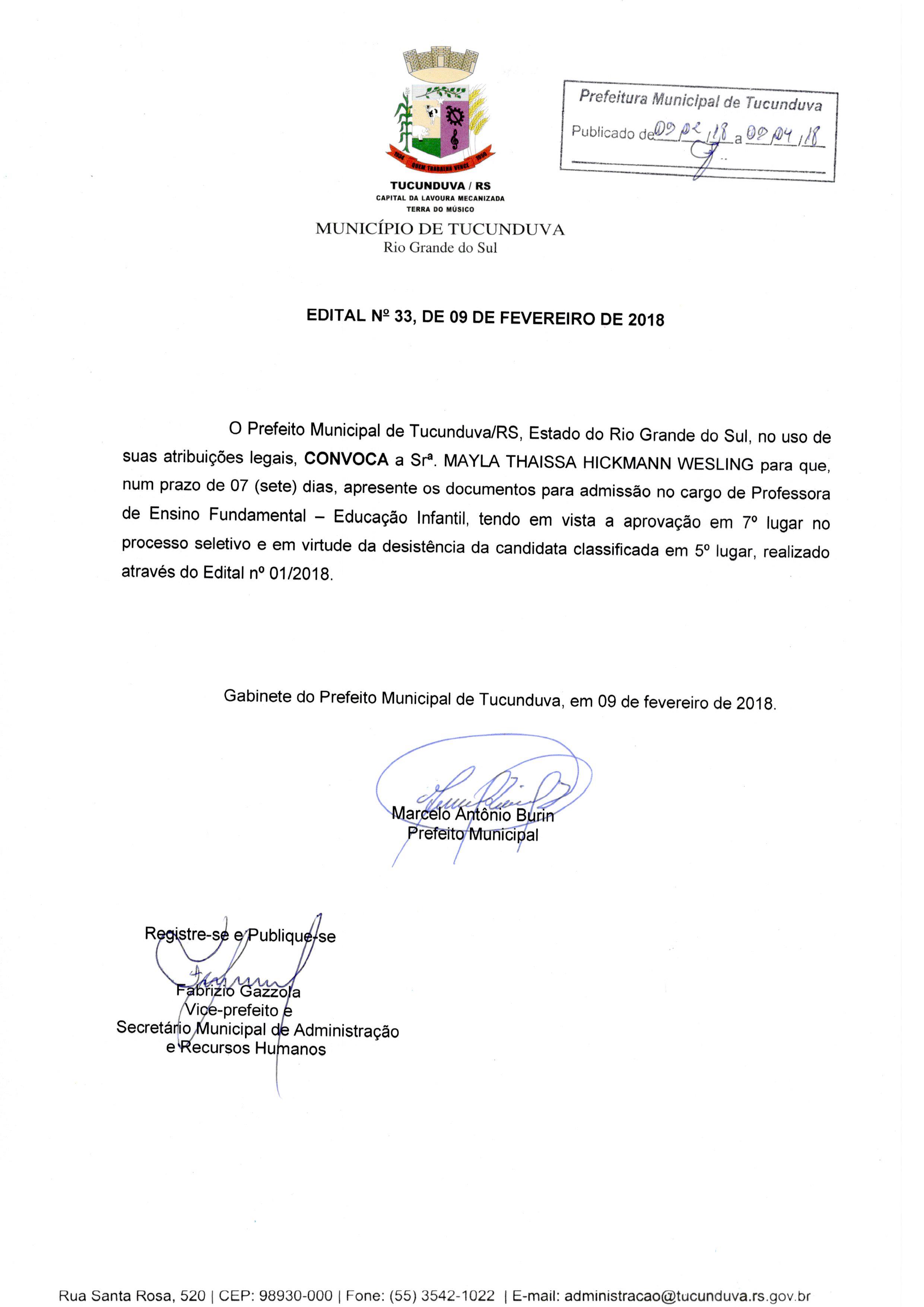 EDITAL Nº 33 DE 09 DE FEVEREIRO DE 2018.