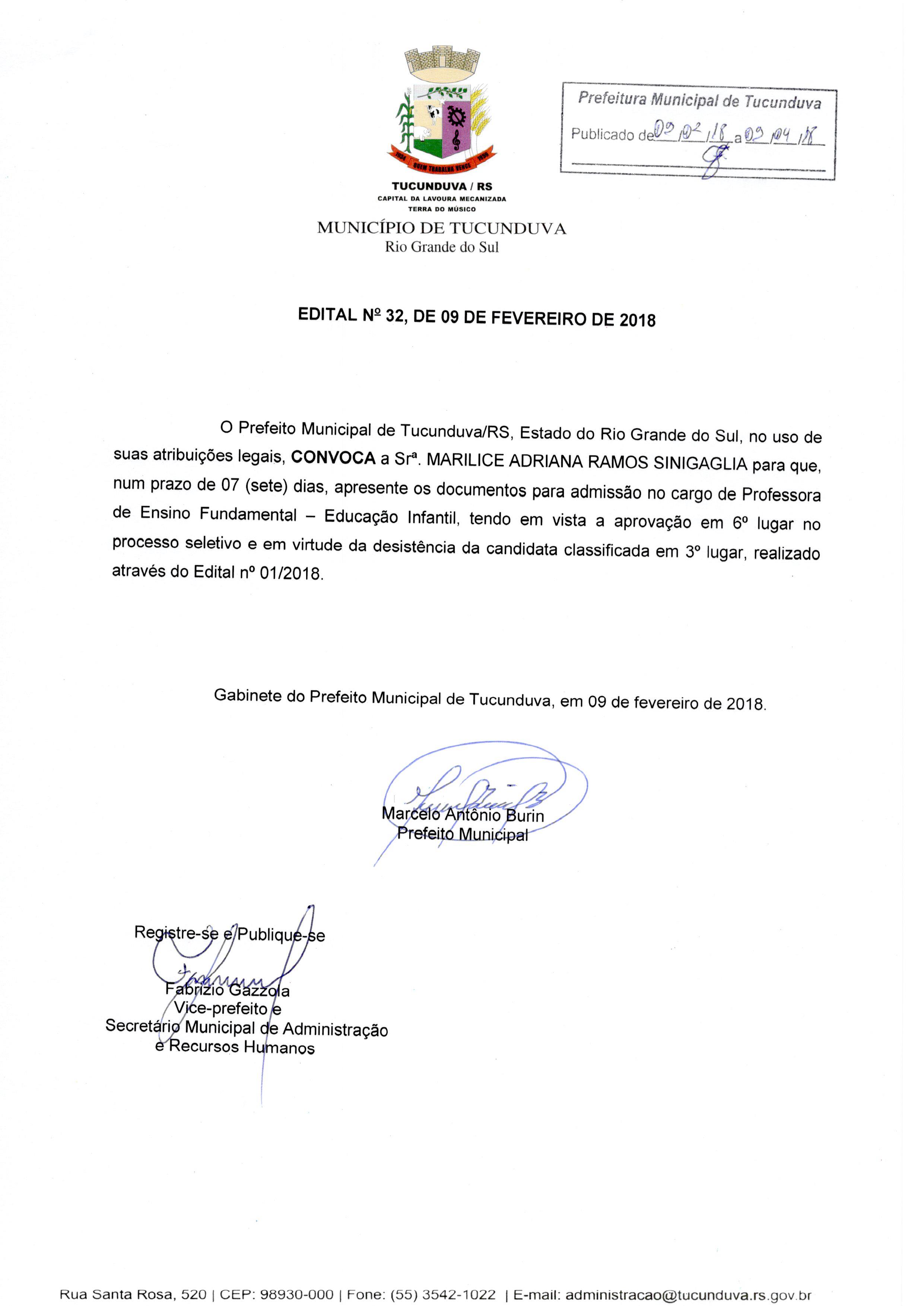 EDITAL Nº 32 DE 09 DE FEVEREIRO DE 2018.