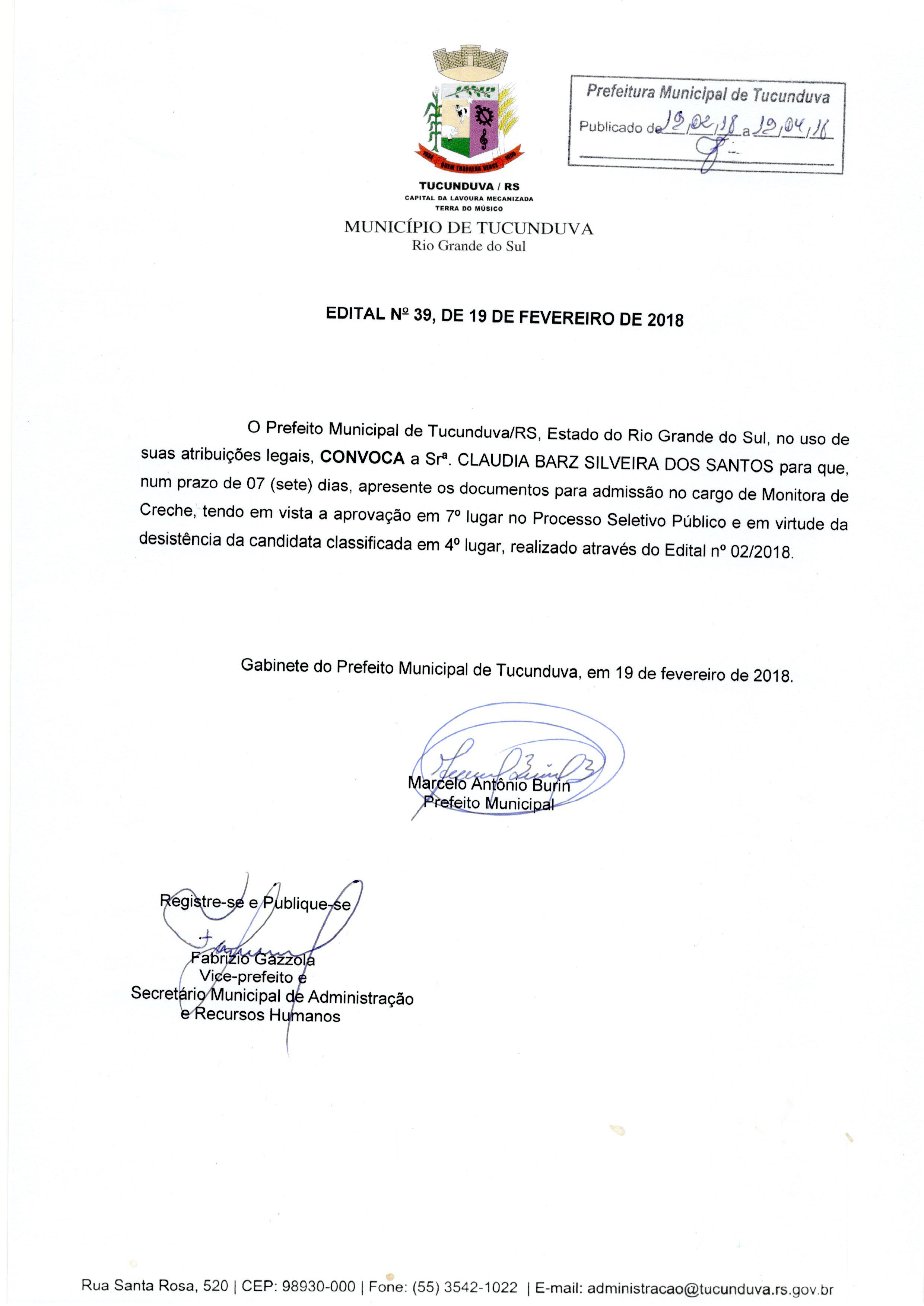 EDITAL Nº 39 DE 19 DE FEVEREIRO DE 2018.